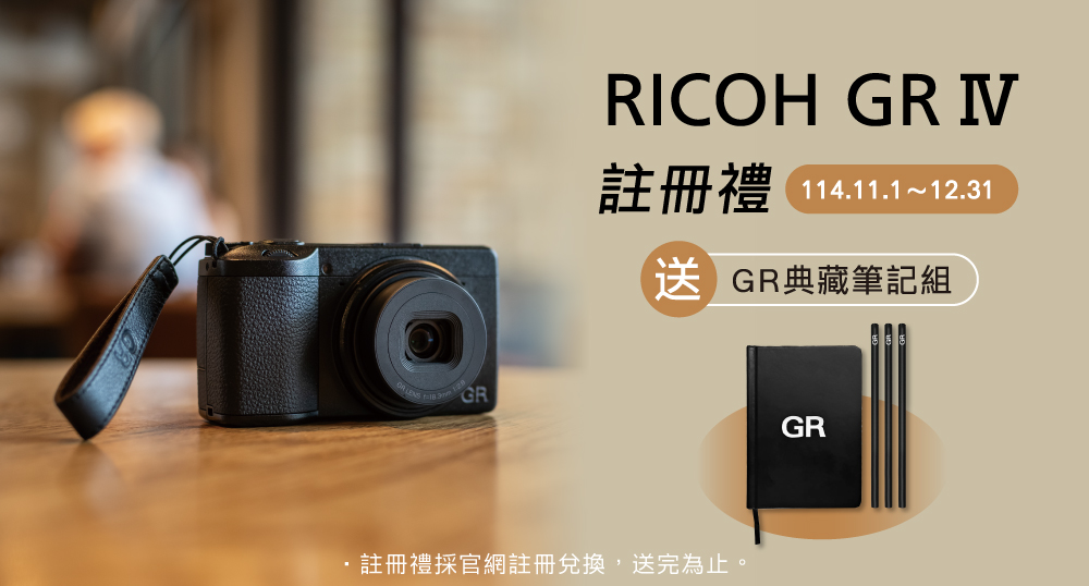 GR IV 標準版註冊禮~GR典藏筆記組 約2574萬畫素 最新Engine7處理器(強化AF) 最新5軸6級防手震 0.6sec高速開機 最高ISO 204800 內建 53GB 內存 電池續航 250張,支援Type-C 充電 分享到: 前往購買 關於 GR IV 規格 熱門產品 PENTAX WG-1000 NEW 工業級 防水相機 K-1II 單機身 GF-2 迷你閃光燈 NEW FLASH Q Q20III 無線閃光燈 Papilio II 6.5x21 近距離望遠鏡 NEW!超廣角 限量系列HD D FA 21mm F2.4 Limited DC WR THETA Z1 51GB 旗艦級 360VR 全景相機註冊禮!多功能小腳架 NEW!VM 6x21 WP 高機能望遠鏡-大全配 RICOH GRIII 標準版註冊禮!GR 3C配件包