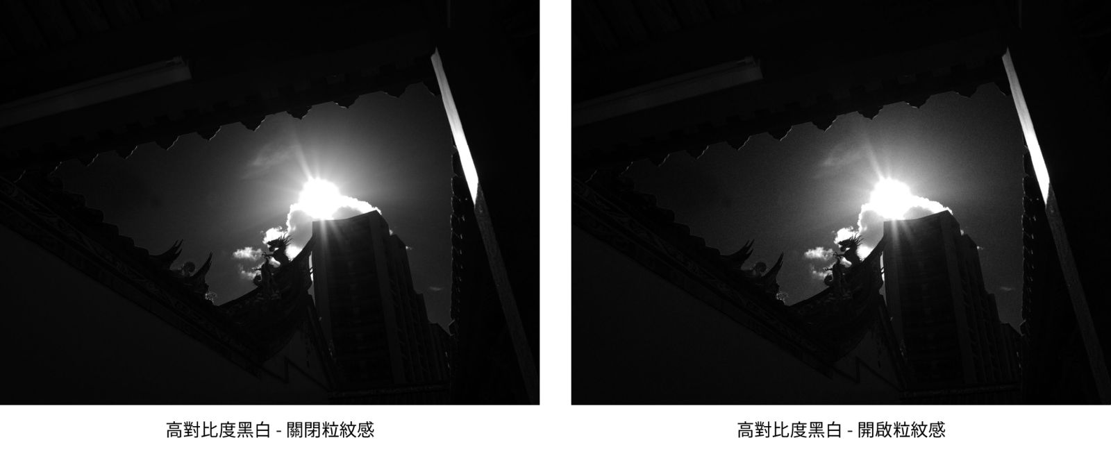 在 GR IV (GR4) 的影像控制(濾鏡)裡,新增加了 「粒紋感」 功能。開啟之後,照片會帶有細緻的顆粒,更貼近傳統底片的視覺氛圍。測試後覺得很適合搭配黑白濾鏡~~超喜歡~~